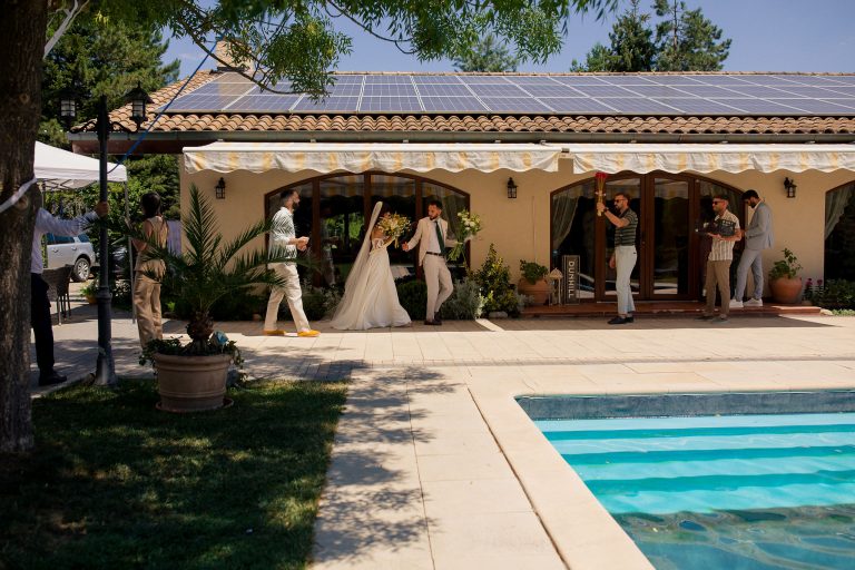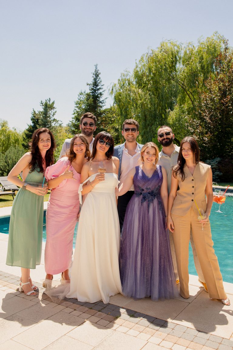 Amalia și Mattia au ales să spună „Da” într-un mod relaxat și plin de viață. Nunta lor de la Paradisul Verde Corbeanca a fost o adevărată petrecere de vară: dress code lejer, atmosferă prietenoasă și multă distracție. Momentul când mirii și invitații au intrat îmbrăcați în piscină a fost fantastic. Sărituri, dansuri, îmbrățișări – sigur și le vor aminti cu drag.